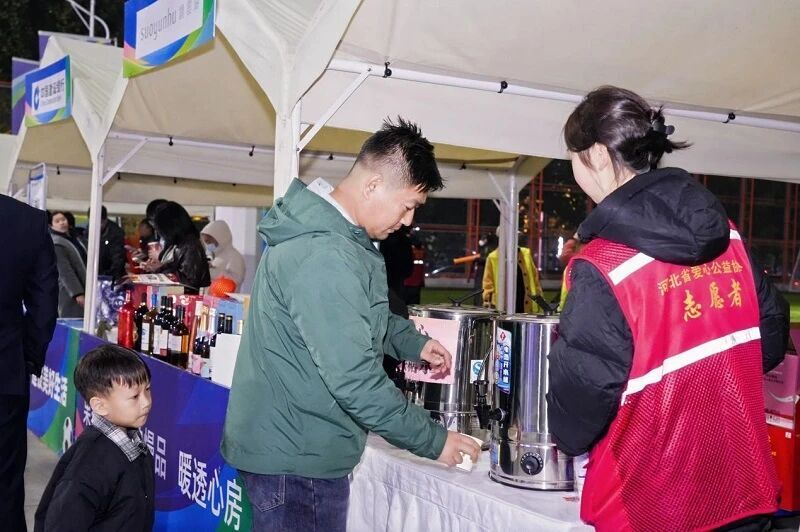 场内赛事燃情四射,赛场外的配套活动同样热度“爆棚”。赛场入口处的“五超主题市集”,从傍晚时分便热闹开街,十余家特色商户一字排开,瞬间聚拢超高人气:既有飘着诱人香气的石家庄特色美食摊,也有摆满五超联赛周边的文创展位,更有专为现场观众准备的暖心姜糖水,摊位间满是温馨治愈的氛围。